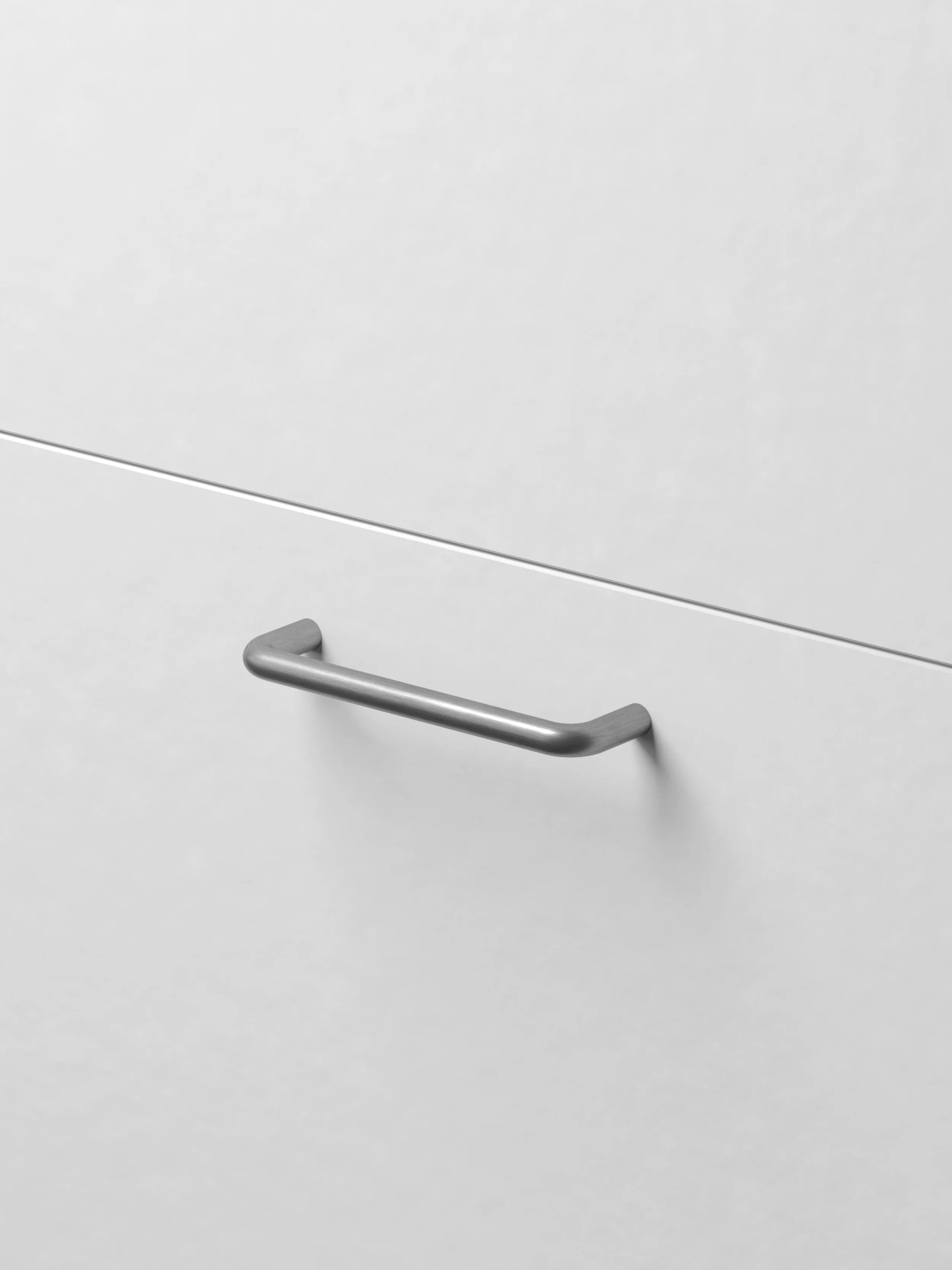 Este tirador es una línea curvada de aluminio. El resultado es un tirador con personalidad, moderno y que proporciona un perfecto agarre.